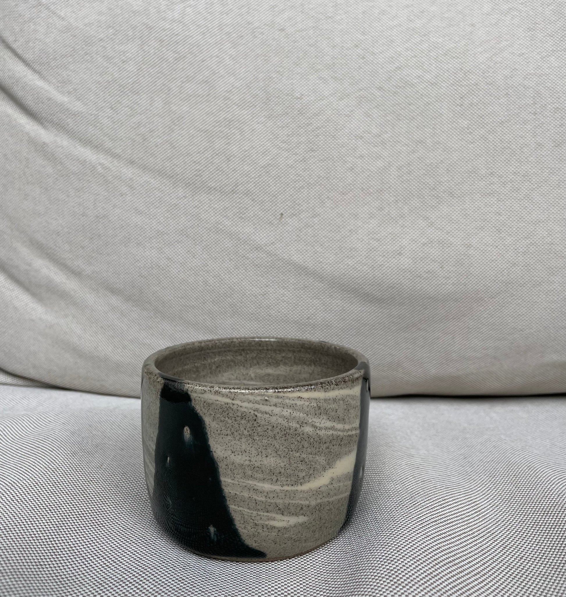 Gerader Becher aus marmoriertem Ton mit schwarzem Farbverlauf. Unikat. Liegt durch die Form angenehm in der Hand. Perfekt für deinen ruhigen Moment im Alltag. Spülifest.