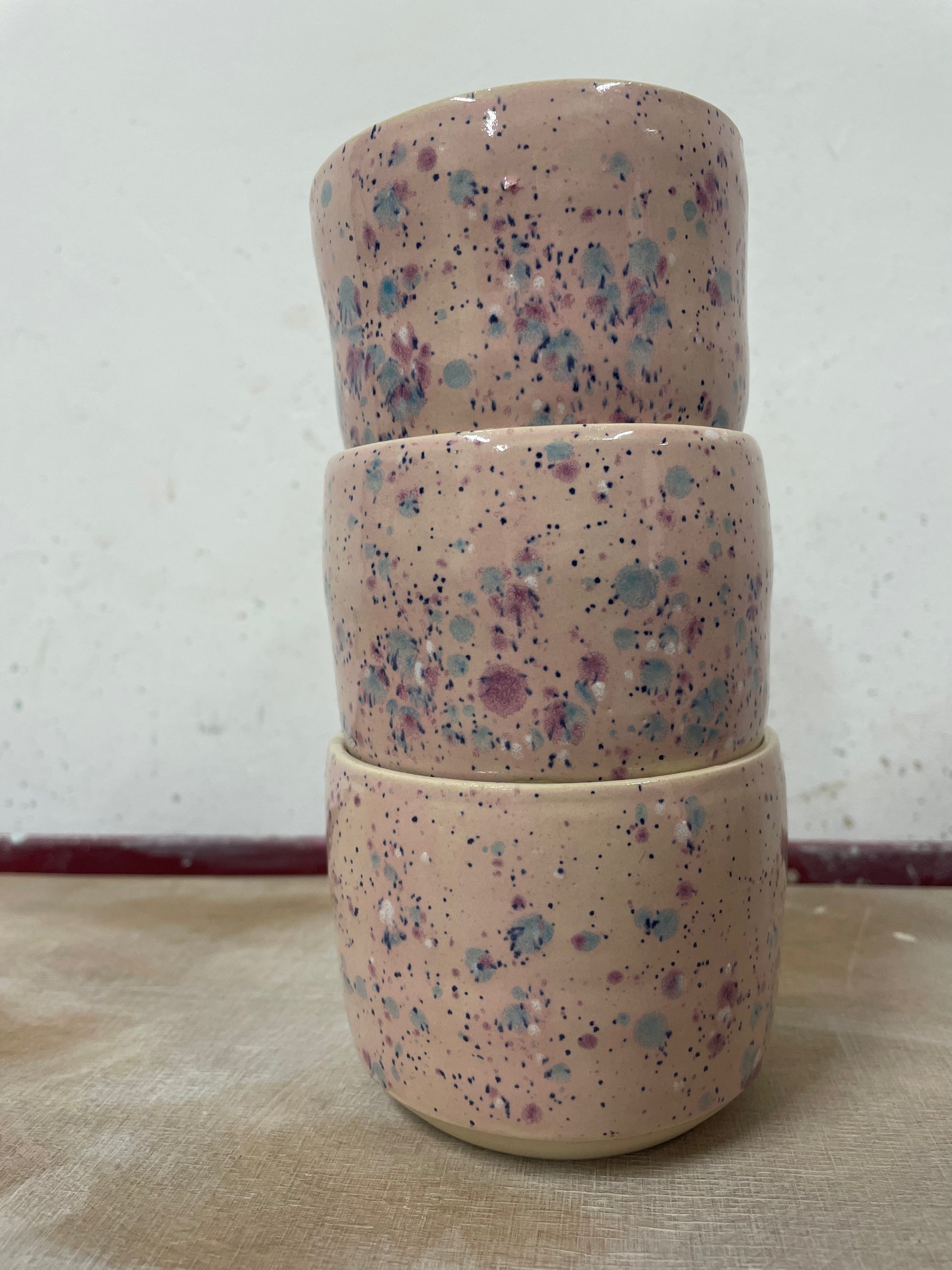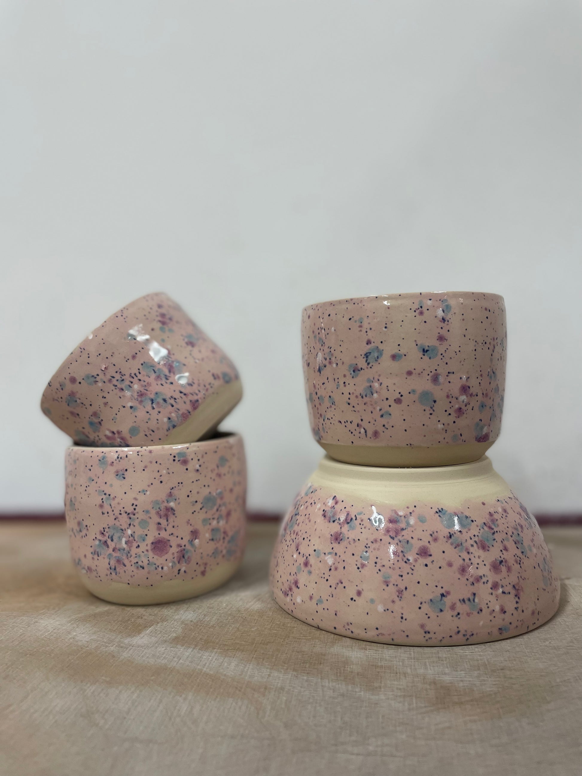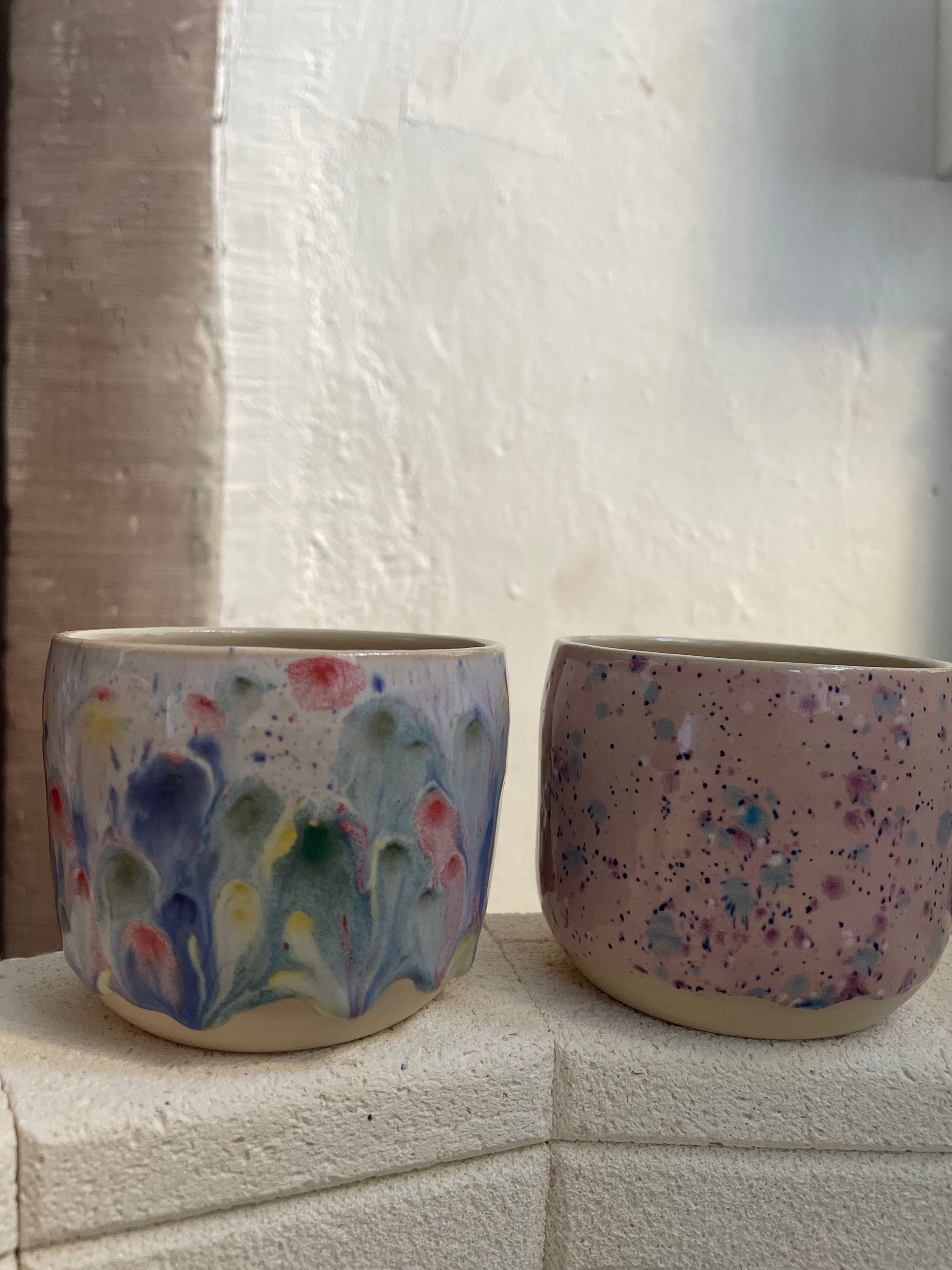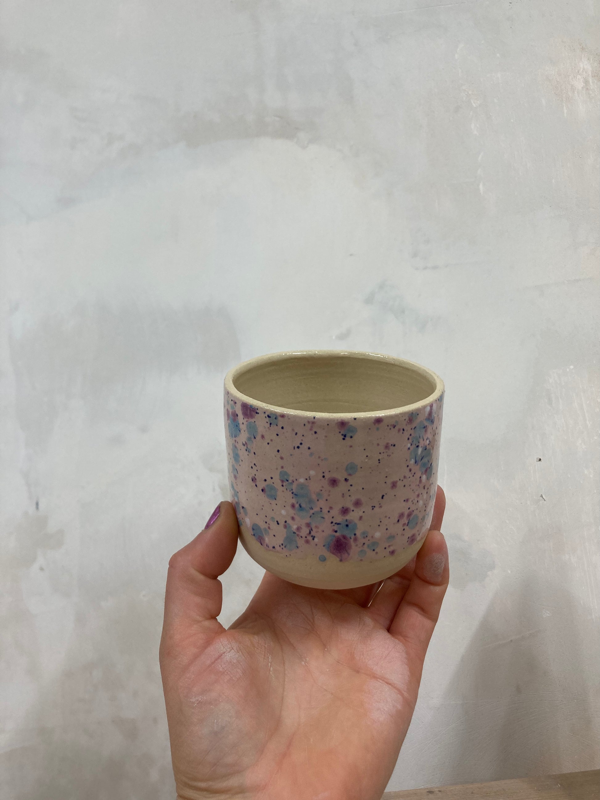 Cappuccino Becher in rosa blauer Glasur. Perfekt für deinen ruhigen Moment im Alltag. Spülifest.