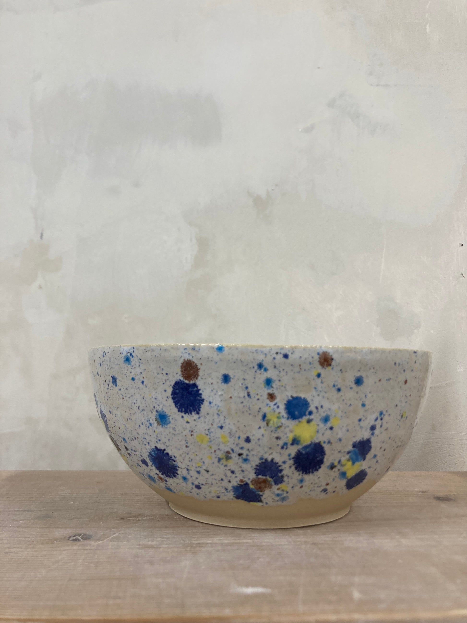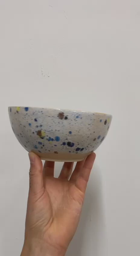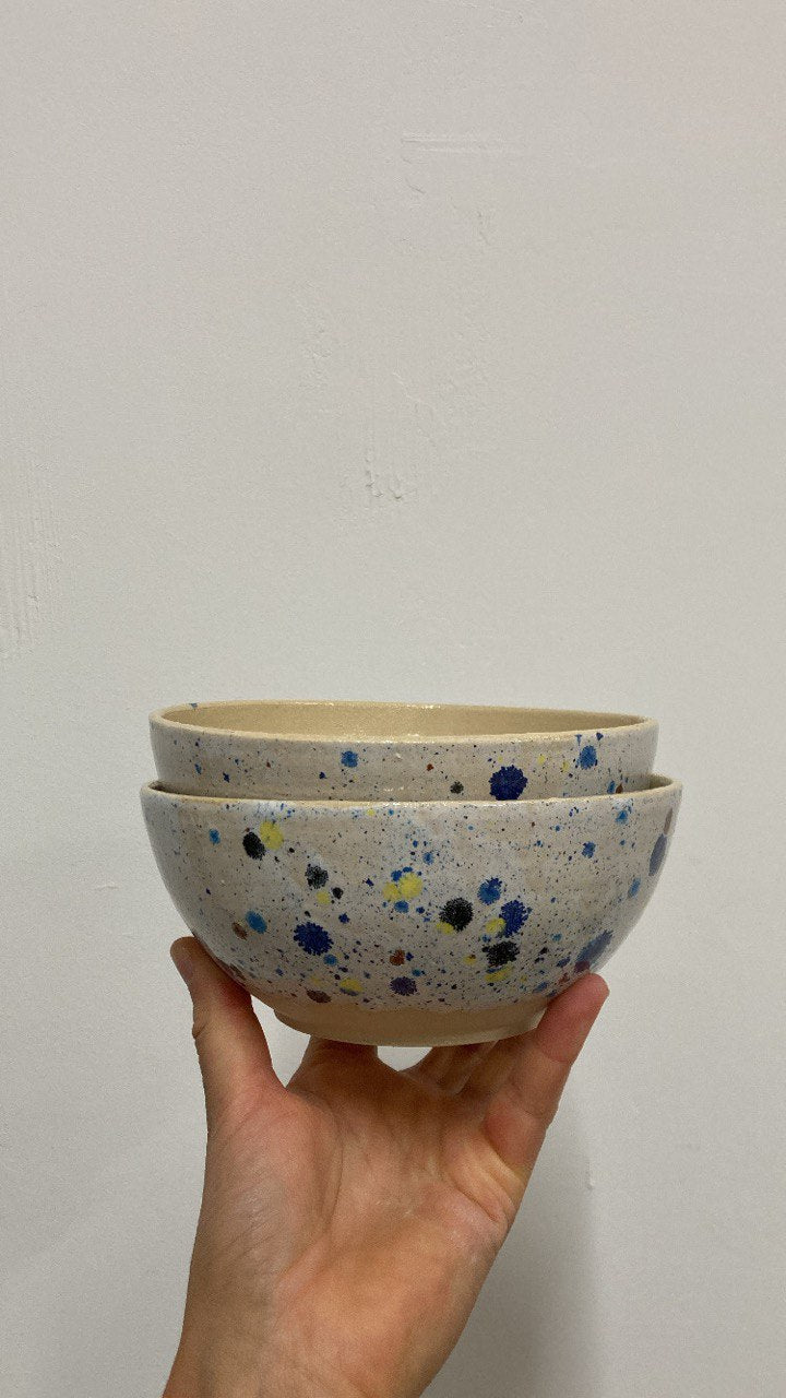 Schöne Müslischale in blau-gelb gesprenkelt. Super Größe für Müsli, Salat oder eine Suppe. Perfekt für deinen ruhigen Moment im Alltag. Spülifest.
