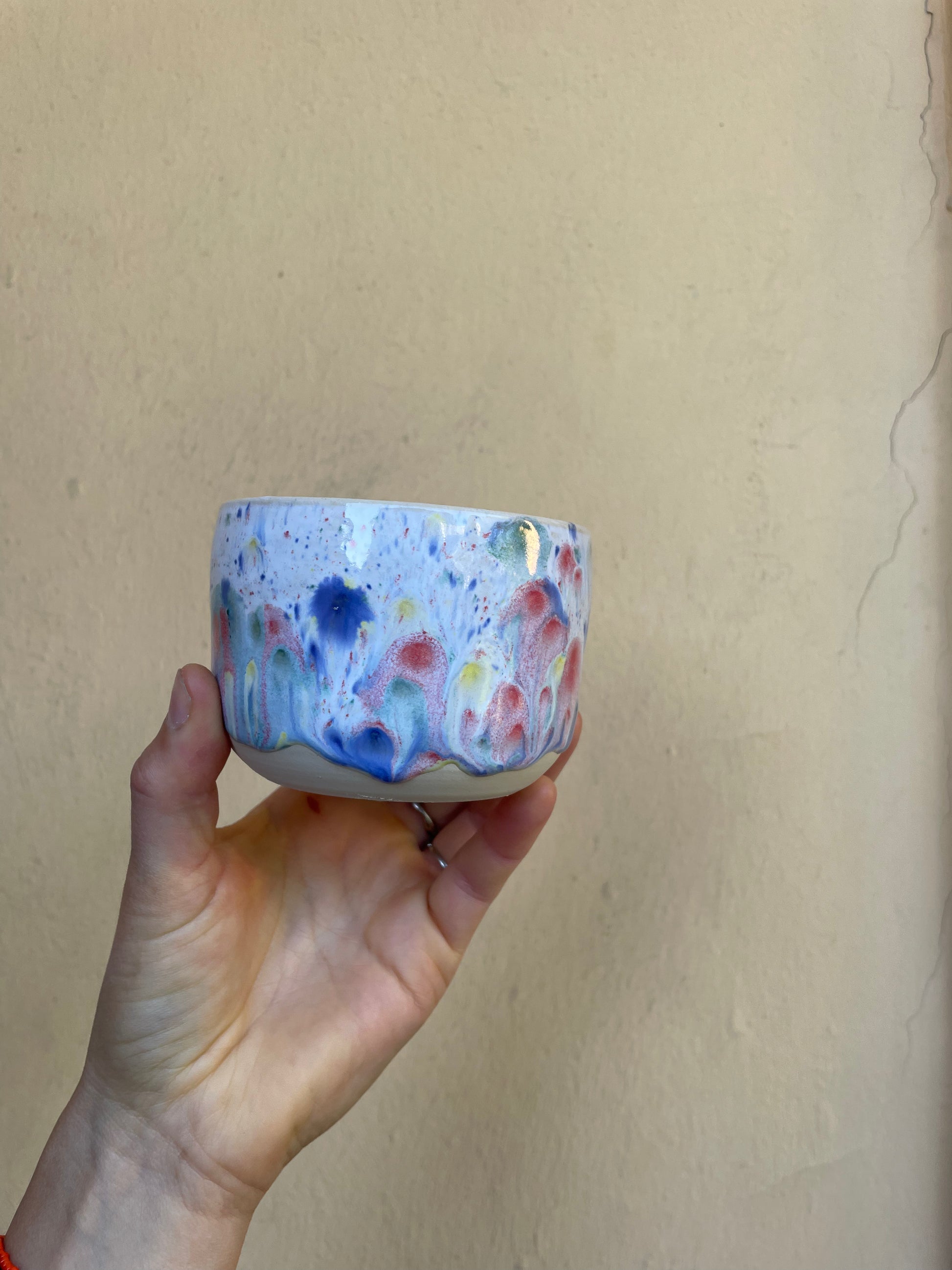 kleiner Cappuccino Becher mit wunderschöner bunter Glasur. Perfekt für deinen ruhigen Moment im Alltag. Spülifest. Füllmenge 200-300ml