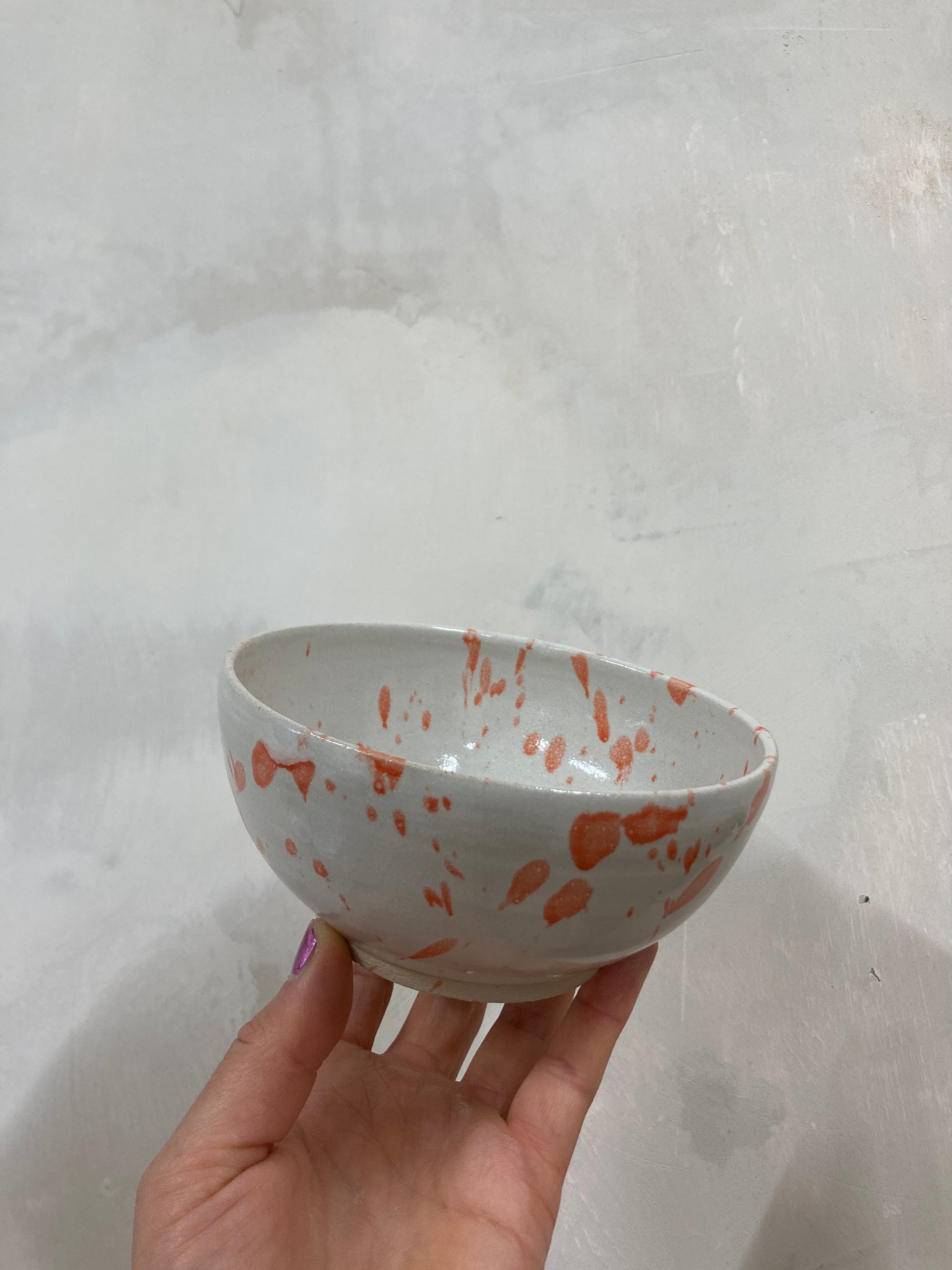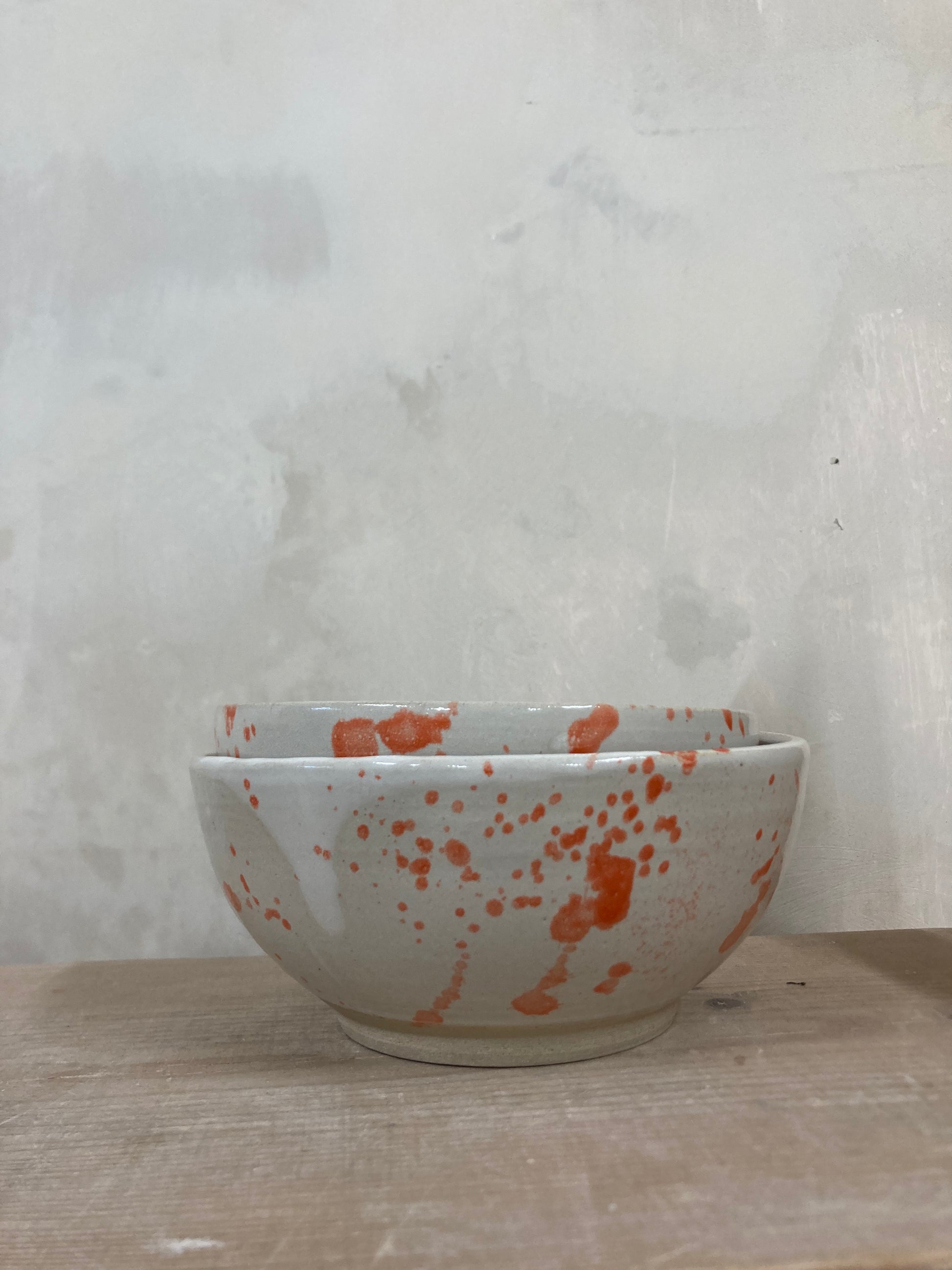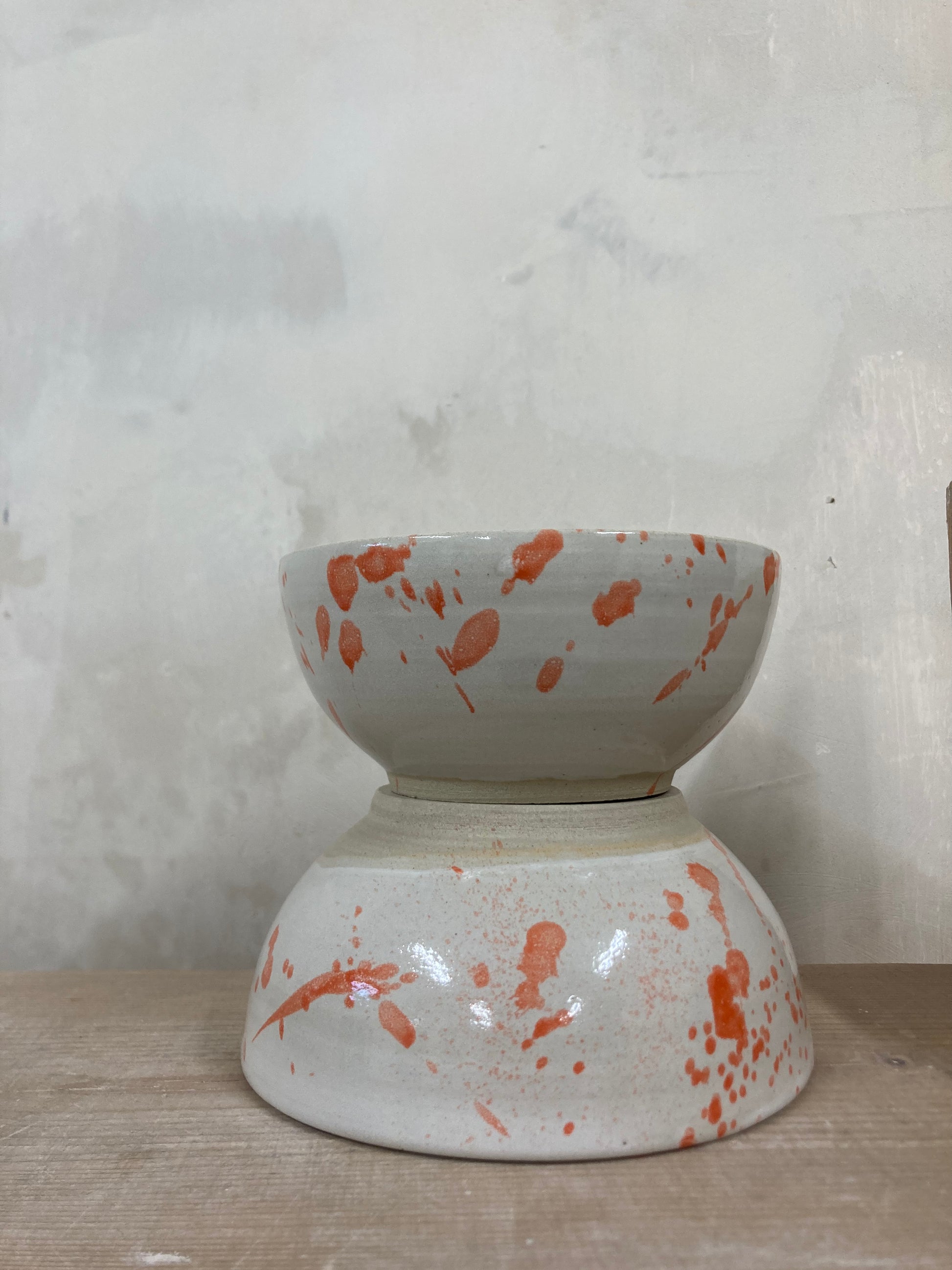 Weiße Schale mit orangenen Freckles in Größe Midi. Perfekt für Müsli. Suppe, Salat oder zum Anrichten. Perfekt für deinen ruhigen Moment im Alltag. Spülifest.
