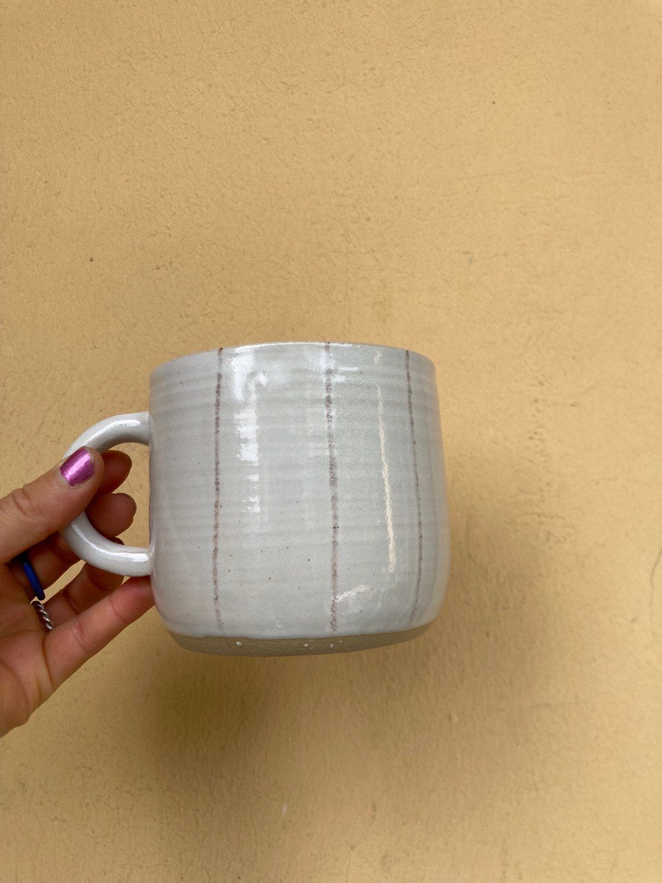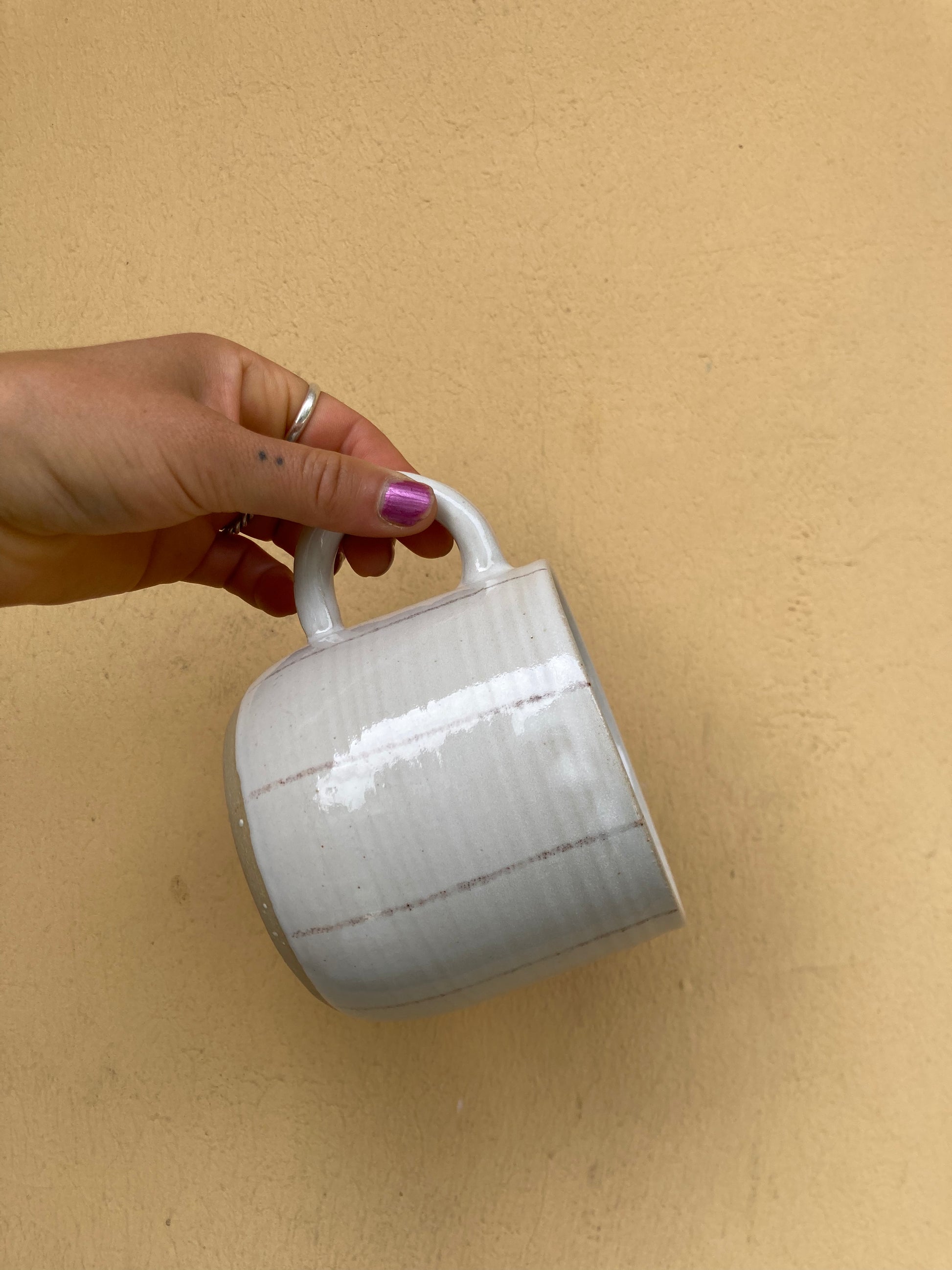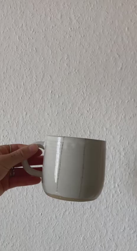 Leicht Zylinderförmige Tasse mit zarten braunen Linien. Perfekt für deinen ruhigen Moment im Alltag. Spülifest.